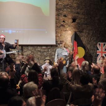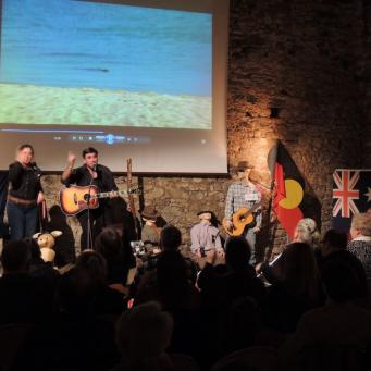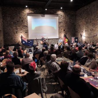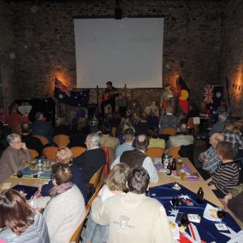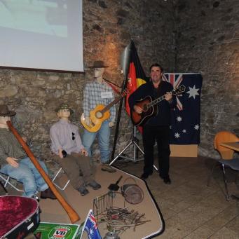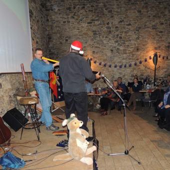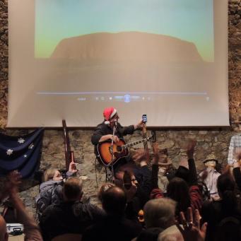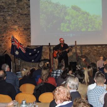 Erstmals hatten wir im Dezember 2014 die Gelegenheit einen australischen Künstler nach Frankfurt zu holen. Es ist uns gelungen den Countrysänger, Gitarristen und Golden Guitargewinner Steve Passfield ein Konzert im Rahmen unseres Dezemberstammtisch und ein öffentliches Konzert in der Zehntscheue Frankfurt-Praunheim spielen zu lassen. Es waren zwei wunderbare Konzerte. Die Stimmung war überwältigend. Die Australiergruppe von OZ-Connect nutzte das Konzert in der Zehntscheune auch als Rahmen für die Weihnachtsfeier. Es war ein toller Abend für Australier und Australienfreunde.